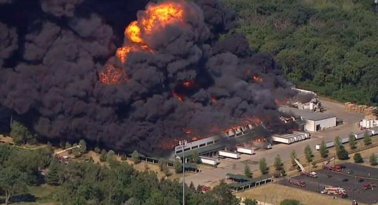 Sparks and flames shot from the line before a loud blast sent golf fans scrambling for safety. The frightening scene unfolded as crowds gathered outside the course, located in Farmingdale, about 35 miles east of New York City.